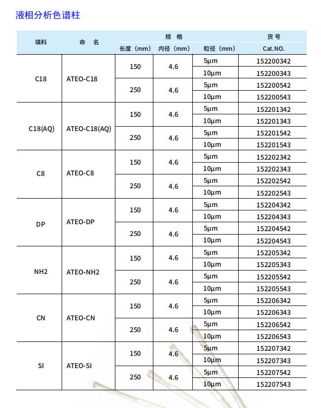 分配型填充色谱柱 吸附型填充色谱柱 专用填充色谱柱 订货须知
