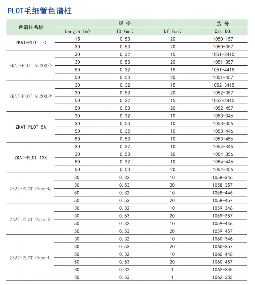 常规毛细管色谱柱 交联毛细管色谱柱 PLOT毛细管色谱柱 专用毛细管色谱柱